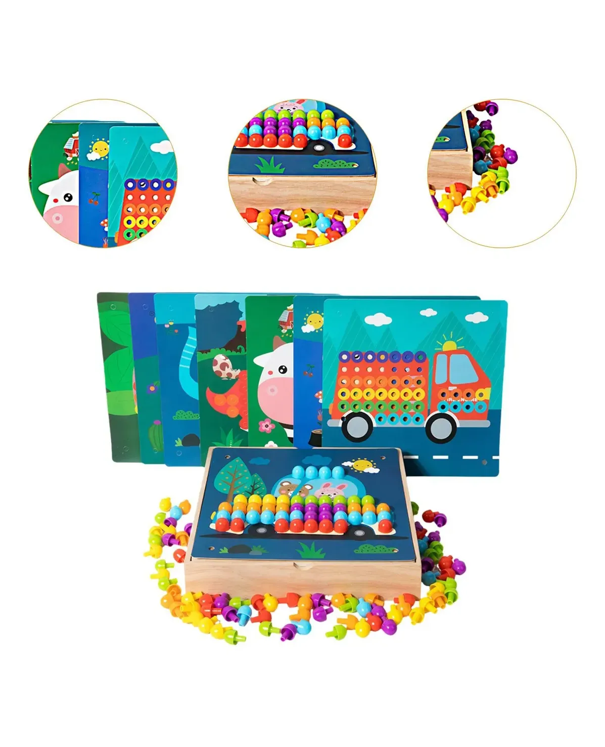 Wooden Toys Mushroom Nail Puzzle 36+ monthe JT-099-24