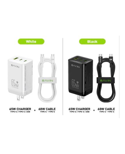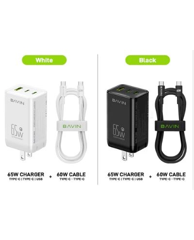 Bavin Koke Adapteri me 3 Porte per rimbushje Fasted type C to C 60w PC2065Y